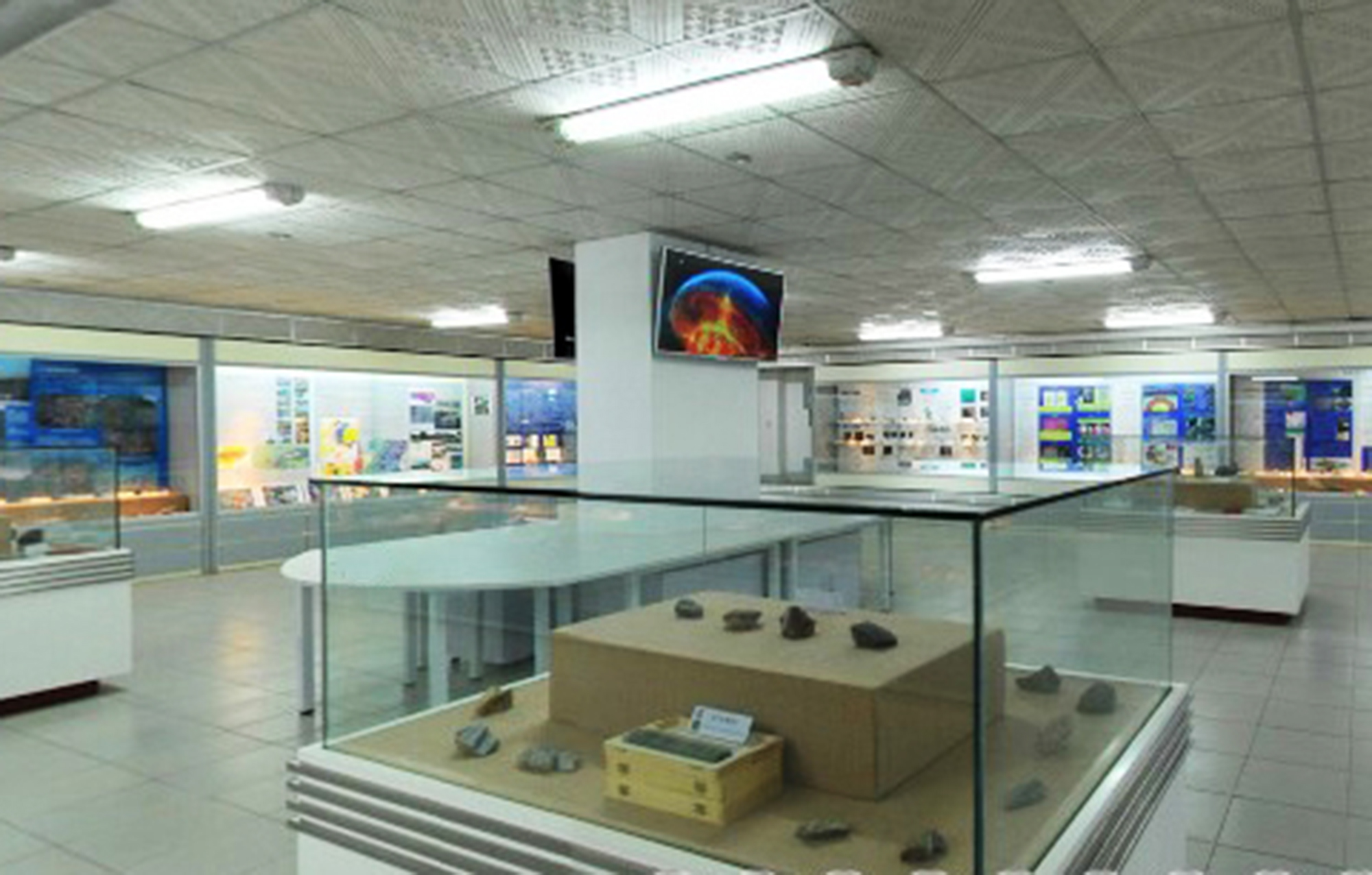 地质陈列馆是面向社会免费开放的科普场馆,展厅面积为400平方米,按矿物、岩石、矿床、构造地质和古生物等内容常年陈列展出各类典型地学标本近千件。地质陈列馆还定期组织地学成果和地学科普知识的特展。目前的特展是“和政古生物化石展”,展出了十余件精美的和政哺乳动物标本。
