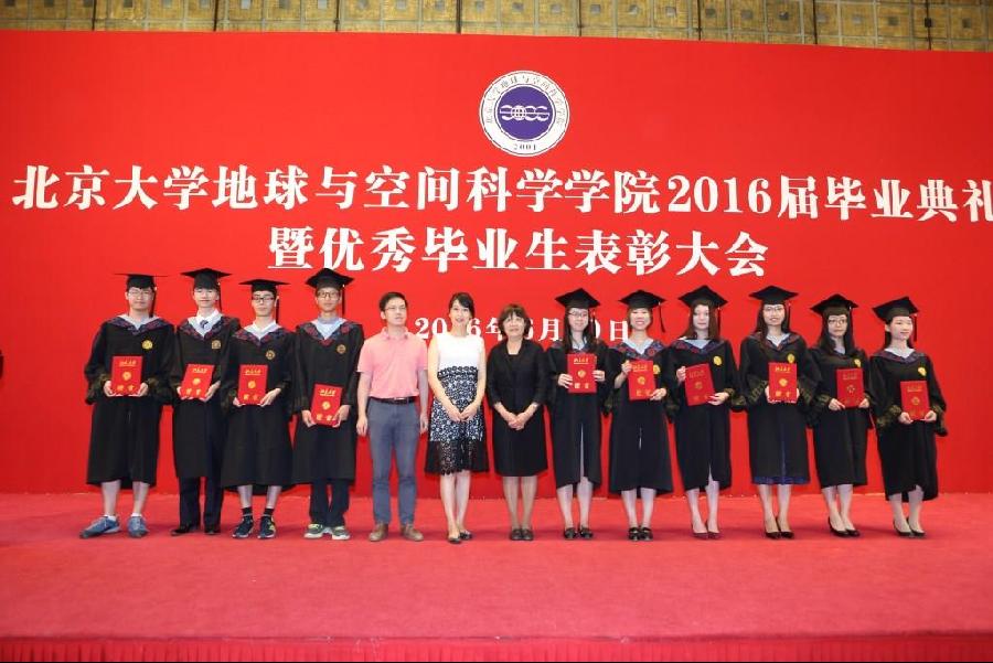 典礼开始后,院党委副书记于超美、赖勇宣读了2016届北京市、北京大学优秀毕业生名单及赴基层和西部地区就业毕业生名单,并同与会领导一起为受表彰学生颁发证书。