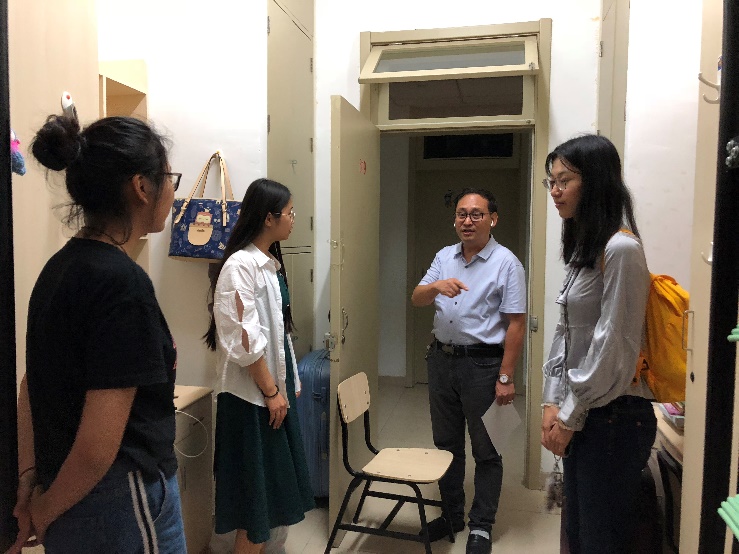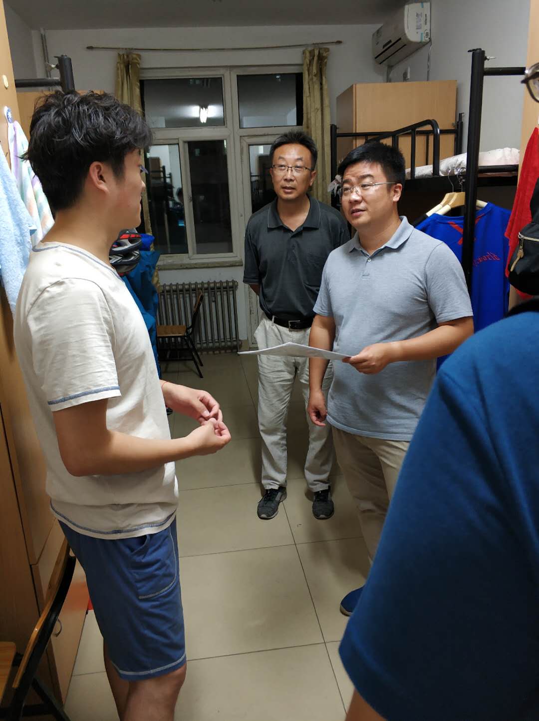 副院长张进江、宁杰远,院学工办于超美、刘金秋和班主任赵红颖、施伟红等老师成三组,分别在燕园、万柳宿舍探望研究生,关心学生的生活住宿情况,给学生带去温暖。