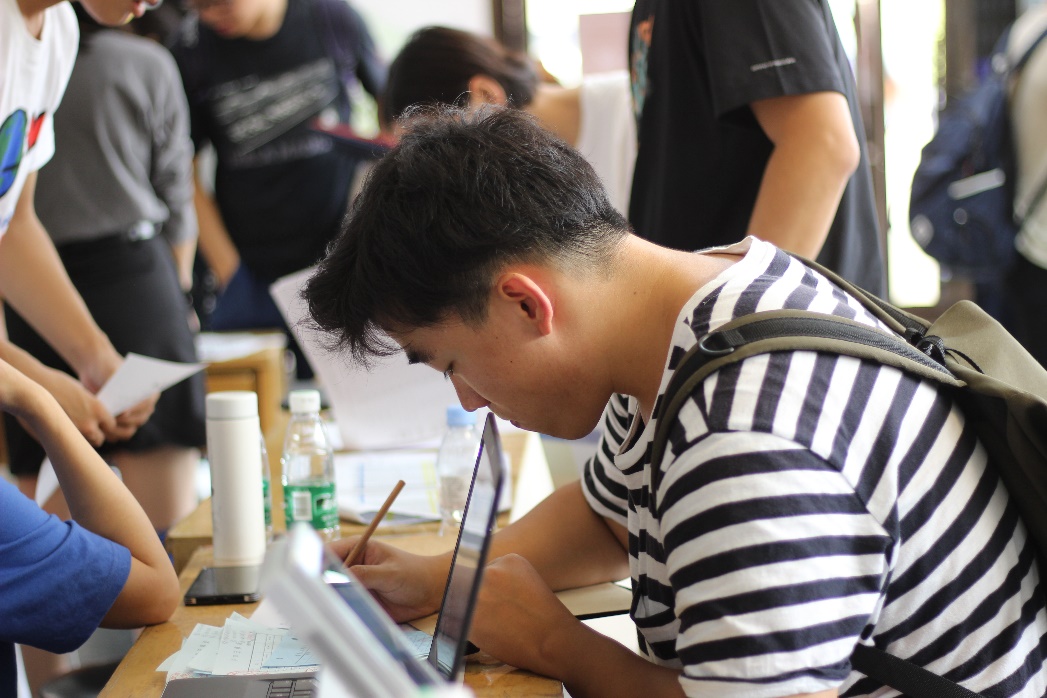 对于迎新工作,学院师生都是热情满满,提前几天就在迎新点布置好了迎新准备工作,摆好了桌椅,测试了新生报道录入系统。迎新当日早上六时许,学工办、团委和研究生会就组织学生骨干准备新生物资的运输,布置好了工作场地。七点不到,研究生新生陆陆续续的到来,现场迎新热情一度高涨。工作人员时刻保持高效状态,为新生提供报道注册与咨询服务,耐心解答萌新们初来乍到的小困惑。