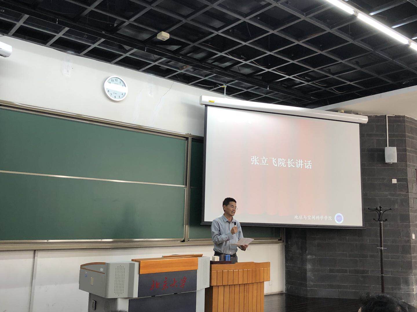 的学院精神。张立飞激励同学们继承学院的优良传统,志存高远、踏实为学,瞄准重大科学问题,勇攀地球与空间科学高峰。第三句话,也是最重要的一句话,是“爱国、励志、求真、力行”。张立飞要求新生们谨记习近平总书记今年五四前夕考察北大时对青年学子的殷切期望,要立志把个人发展同国家富强和人类文明进步结合起来,在中华民族伟大复兴的宏伟史诗中谱写属于北大地空人的青春篇章。