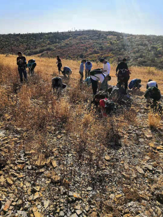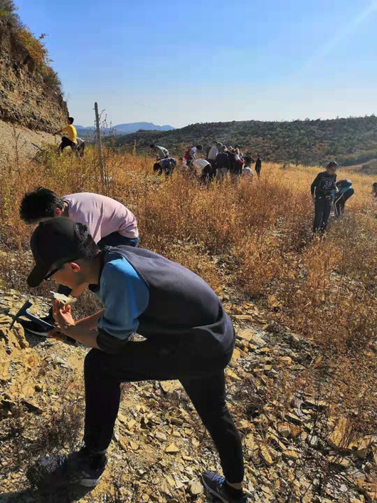 10月2日,来到了北票的化石自然保护区,在当地博物馆馆长的指引下,同学们开始了自己挖化石的活动。对大多数人来说,这是第一次拿上地质锤,虽然同学们对其使用并不熟练,但在摸索下已经可以自行挖掘。在老师的指导帮助下,东方叶肢介、三尾拟蜉蝣、狼鳍鱼等化石纷纷出土,为这次考察之旅增添了一件新的礼物。在晚上,队伍来到了大黑山脚下。作为考察的最后一晚,同学们举行了一次盛大的篝火晚会,晚会上同学们、老师们分享了自己的经验和感受,大家畅所欲言,其乐融融。最后,老师们也带着同学们“脚踏实地、仰望星空”,领着大家辨认星座,这样结束了出行的最后一个晚上。