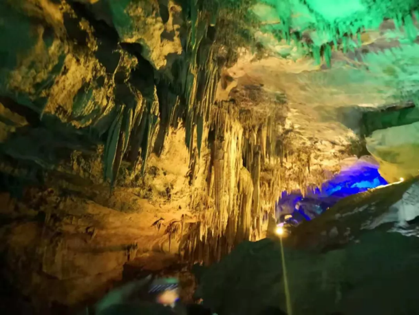 在盘山修整一晚后,9月30日,地质考察队伍一路向北,前往本溪水洞。大自然的鬼斧神工令人拍手叫好。本溪水洞,难得一见的北方喀斯特地貌,在这平均降水量不到1000mm的地方,历经了数十万年的板块变化、海退海进与水位变迁,经过了数十万年的石灰岩沉积、化学溶蚀与流水沉积,打造了如此不同寻常的地质奇观。其中形态各异的钟乳石、石笋、石幔、石柱,似莲,如剑,类瀑布,惟妙惟肖,它们都是溶有碳酸氢钙、碳酸氢镁等一系列物质,经过漫长的化学变化后,在这堆积、固结。而伴随着流光溢彩的背景灯,这场视觉盛宴达到了顶峰。之后,同学们参观了当地地质博物馆,了解本溪地质构造和当地化石组成。