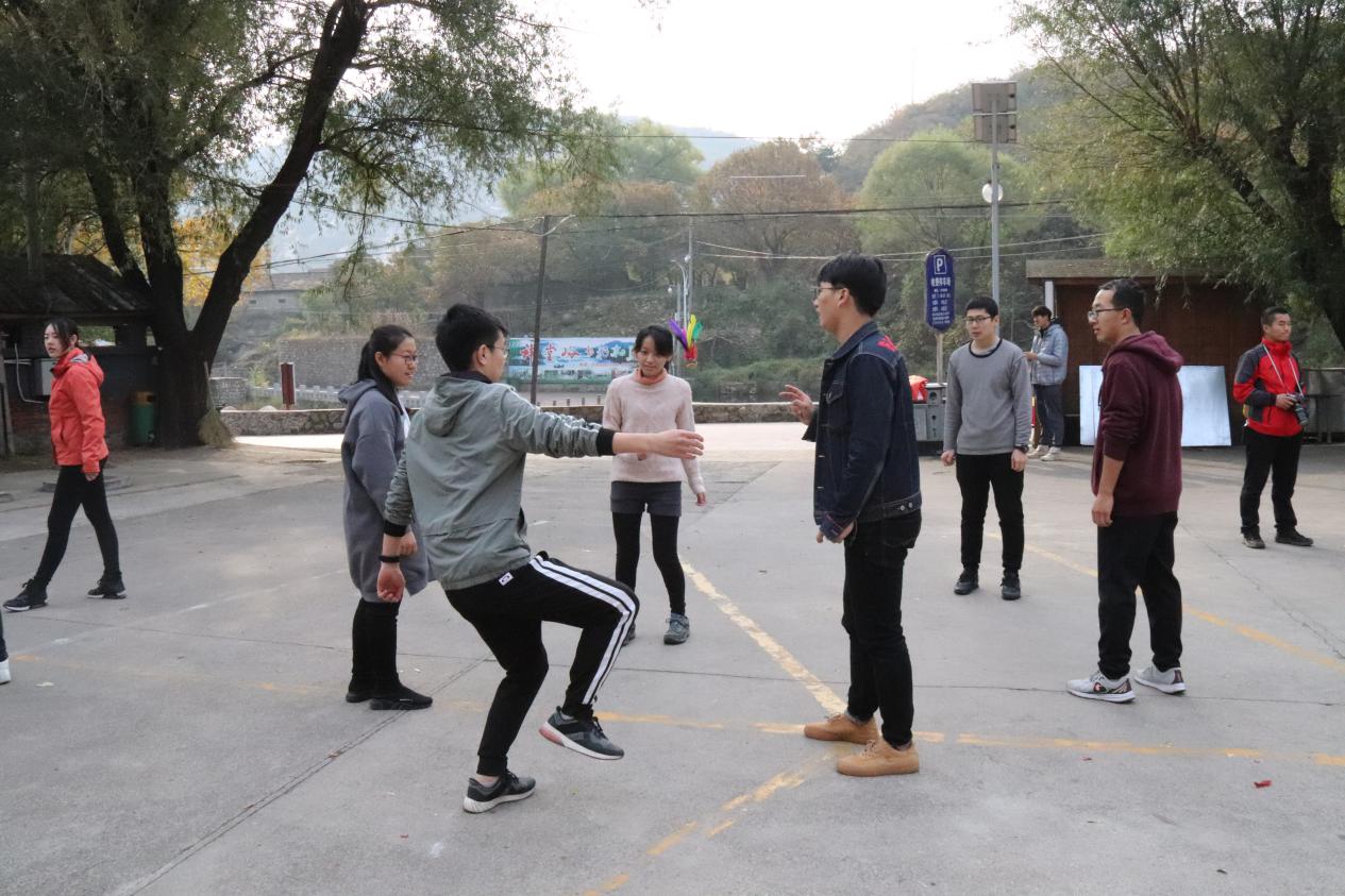 早饭过后,大家开始了上午的素质拓展项目——徒步行走。在进入神堂峪景区前,同学们通过进行踢毽子、“买菜游戏”等活动进行了充分的热身,也很好地带动了全员的兴致。