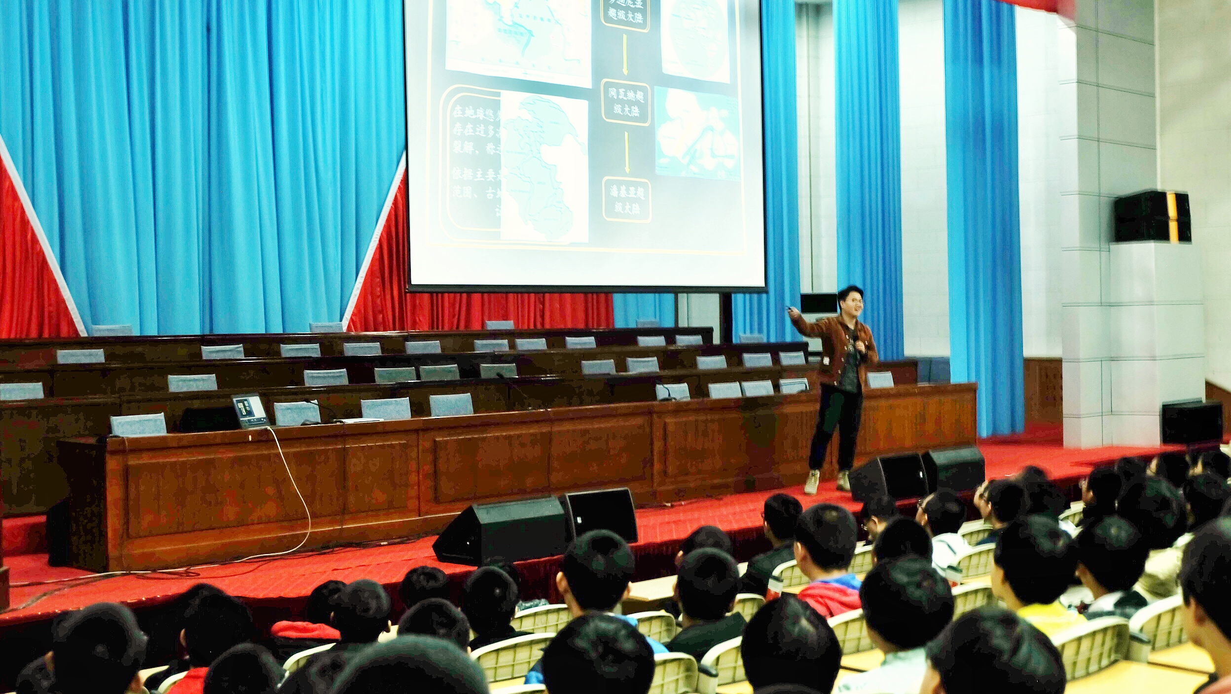 2018级地质专业博士生葛成隆以“青藏高原”为主题,向同学们展示了青藏高原的奇峻之美,又从一个地质学研究工作者的角度出发,用简单通俗的语言让同学们了解了青藏高原的形成过程、演化原因以及相关的研究方法,使得同学们对于地球科学产生了浓厚的兴趣。
