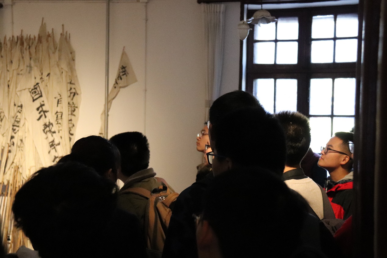 红楼一层的东北角是新潮社活动室,其内竹竿斜倚、标语半卷,眼前仿佛浮现出当时青年们高举他们前夜在从宿舍匆匆扯下的窗帘和床单上挥斥方遒、第二天在大街上高喊“外争国权,内惩国贼”的口号的生动场面。