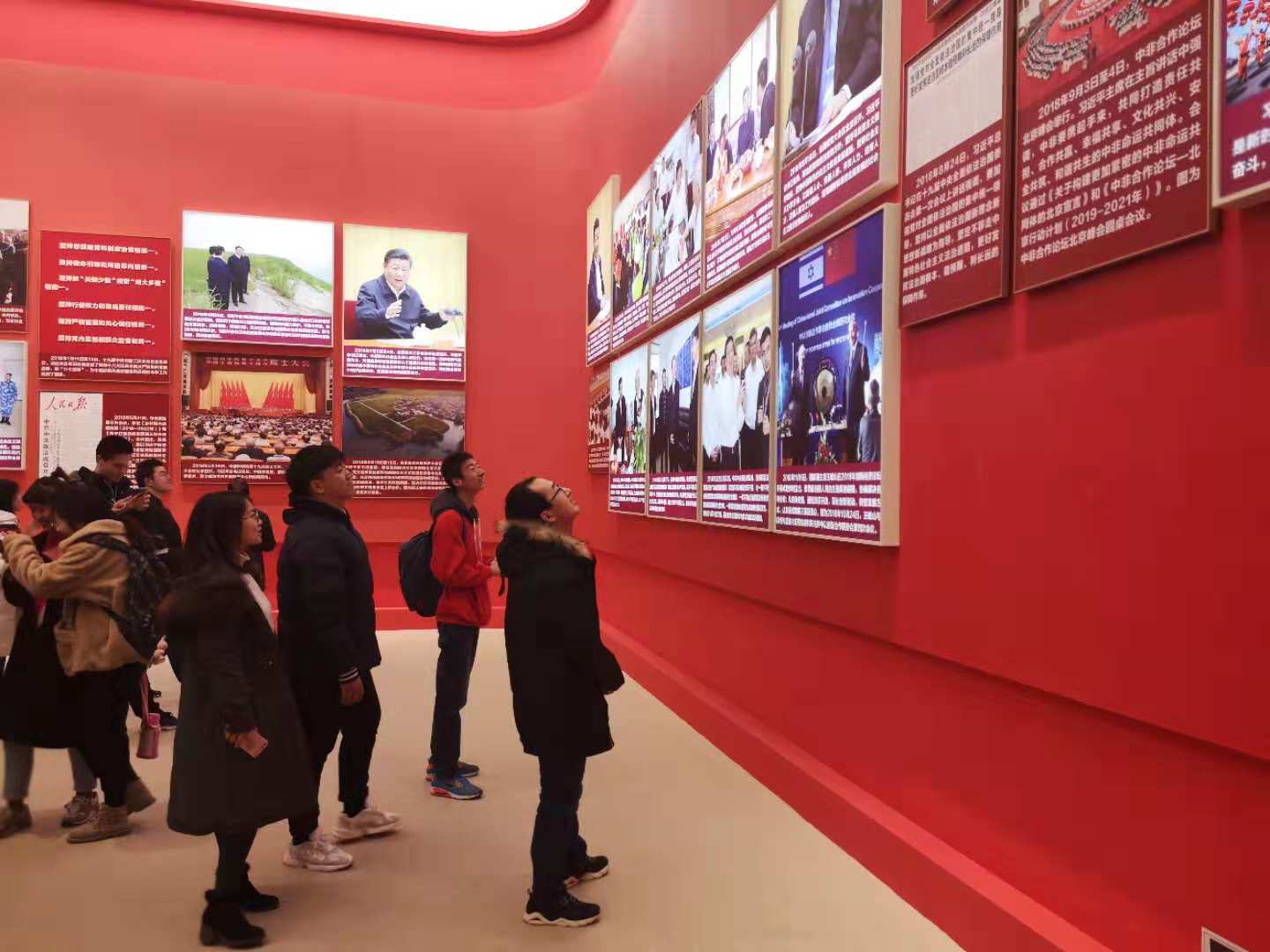 “历史巨变”展厅回顾了以经济建设为中心,建立和完善市场经济体制的伟大实践。“大国气象”展示了科技创新助推强国之梦的历史画卷。四十年来,中国科技事业蓬勃发展,科学技术水平显著提升,为社会主义现代化建设提供了坚强科技支撑。同学们看到一项项先进技术和一件件大国重器,感到欣慰和激动,惊叹于祖国科技的突飞猛进。“面向未来”展厅包含《清明上河图》穷幕影院、“大美中国”长廊和时光博物馆三个主题,时光博物馆中陈列的老物件,勾起了许多往昔的回忆。