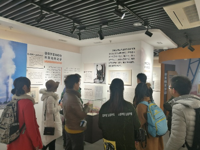 随后大家来到西区,主题为“卓越贡献”、“事业传承”和“精神永存”。“卓越贡献”从创新地学理论开始,地质力学是李四光创立的有重大影响的学科,他运用地质力学理论指导了全国地质普查的战略选区工作,为寻找我国紧缺的重要矿产资源和国家重大工程建设选址发挥了重要作用。1920-1928年,1931-1936年李四光还先后任北京大学地质系主任;建国后,他还主持筹办了新中国多所地质院校,为中国的地质教育事业做出了突出贡献。