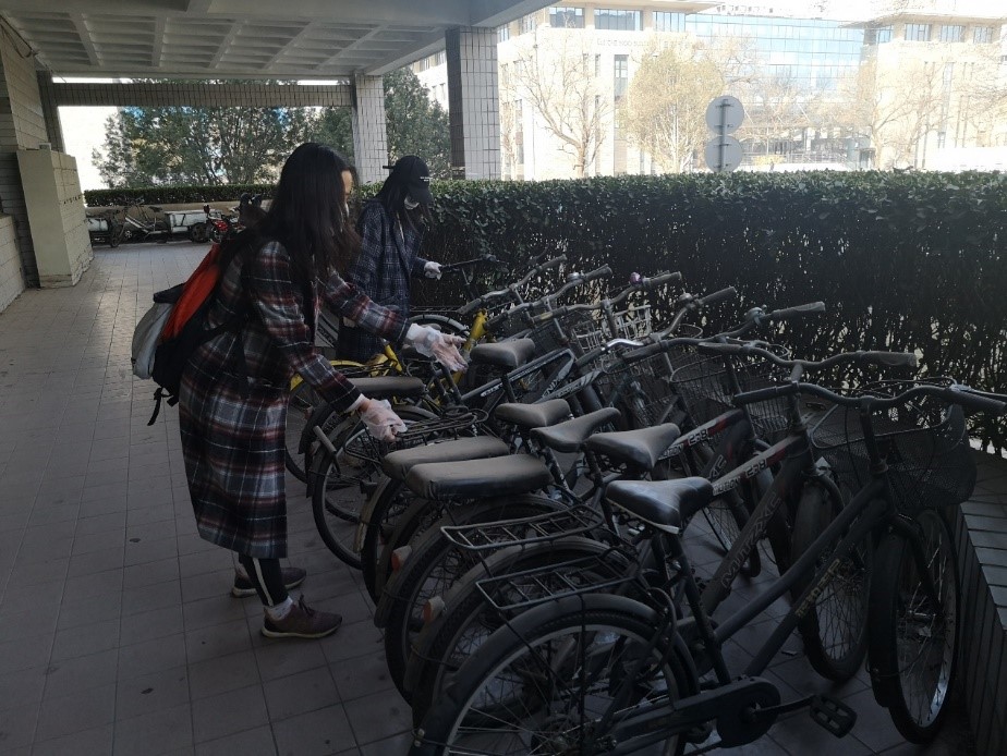 逸夫二楼前的空地停放了很多自行车和电动车,很多车混乱的停放或倒在地面,占据了大量空间,很不美观,也给停车同学带来极大不便。3月16日上午,支部党员来到逸夫二楼门前,对混乱停放和大风吹倒的自行车重新集中摆放,经过整理,自行车停放的更加有序,腾出了很大的停车空间。