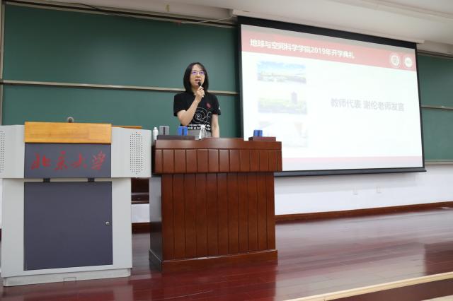 教师代表谢伦老师表示,自己很高兴担任新生班主任。和生机勃勃的同学们相遇,会给未来的生活带来不一样的色彩。作为一名老师,秉承传道授业解惑的精神,希望把自己的人生经验和感悟跟所有同学分享。谢伦老师对大家提出了五点期望:第一,学会珍惜,懂得感恩。珍惜来北大求学的机会,珍惜遇到的每一位同学和老师。感恩成长中父母付出的辛苦,感恩求学生涯中的老师和帮助过你的人。第二,负责任,有理想,敢担当。对自己、对他人、对社会、对国家负责任。天下兴亡,匹夫有责,这是北大人的使命。第三,面对压力,做一个健康快乐、积极向上的人。第四,认真完成学业,并在北大丰富的课外生活中找到自己的兴趣,积极参与,找到生活的平衡点。第五,遇到困难和问题,向同学和老师寻求帮助。