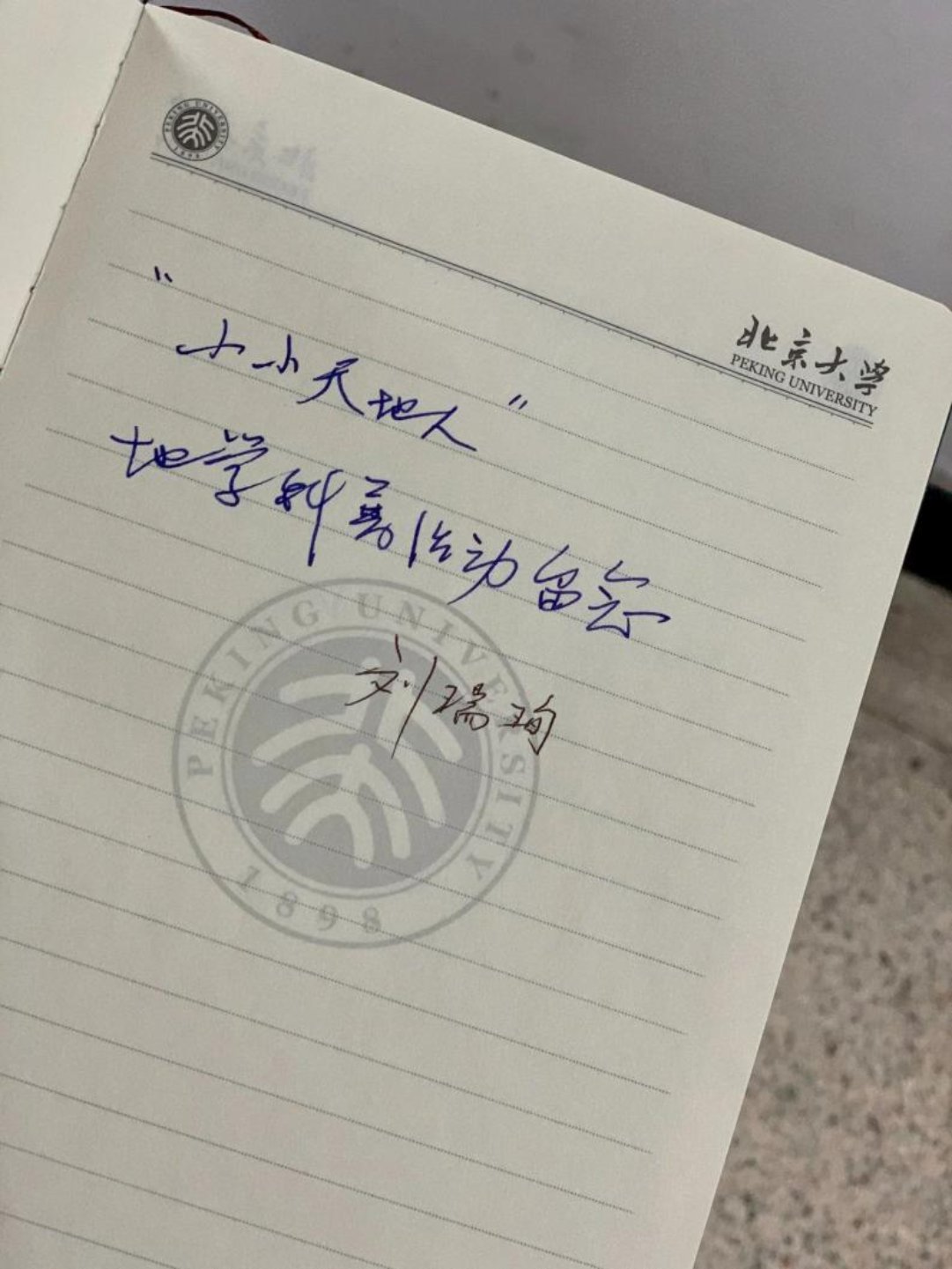 历时一天的地学科普活动结束了,最后,孩子们收到了一份特殊的礼物——由北京大学地质学系前系主任刘瑞珣教授题字的北京大学纪念笔记本。刘瑞珣教授曾为今期六合彩号码