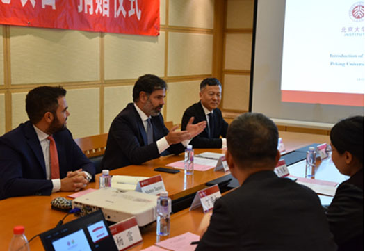 党委书记李培军代表北大对Snam公司给予的捐赠表示感谢。他指出在当前全球能源转型正在深入进行、国际环境变化很大的时期,能源研究院与Snam公司的合作非常有意义,Snam公司在天然气领域尤其是基础设施的运营方面拥有宝贵的知识和经验,双方的合作也将助力中国的天然气行业更好地发展。同时他表示一定会将项目执行好,真正为行业发展起到积极推动作用。随后,能源研究院副院长杨雷介绍了开展相关项目工作的设想,与会人员进行了热烈的座谈。