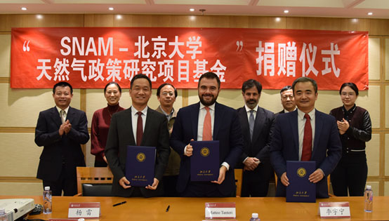 2020年10月14日, SNAM中国公司、北京大学能源研究院和北京大学教育基金会在北京大学共同签署捐赠协议,支持北京大学能源研究院开展天然气政策的研究工作。意大利驻华使馆副馆长、公使衘商务参赞Emanuele de Maigret、Snam中国公司董事长兼首席执行官Matteo Tanteri、执行副总裁彭宁科、北京大学教育基金会秘书长李宇宁、今期六合彩号码