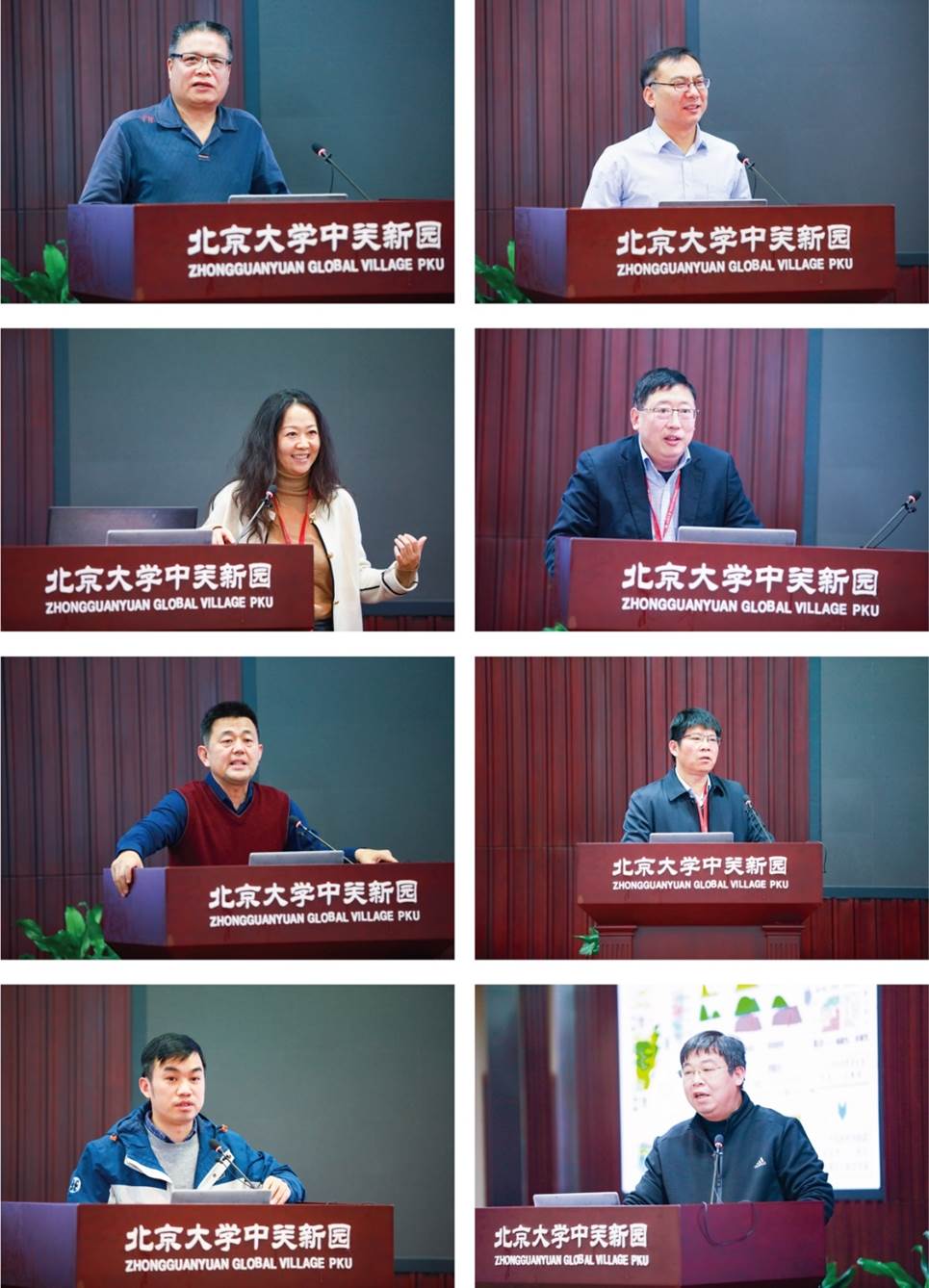 从左到右、从上到下分别为:李亚林、樊隽轩、王宏宇、周勇义、朱彬、陈旭、王典、郭艳军作报告