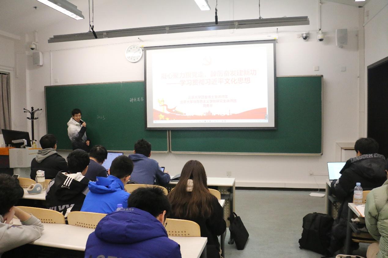高君宇学生党支部组织了学习贯彻习近平文化思想活动。支部的百余名成员跟随北京大学团委博士生讲师团和北京大学马克思学院研究生讲师团成员周勇平深入学习了习近平文化思想和相关的会议精神。会议由邓玄宇主持。