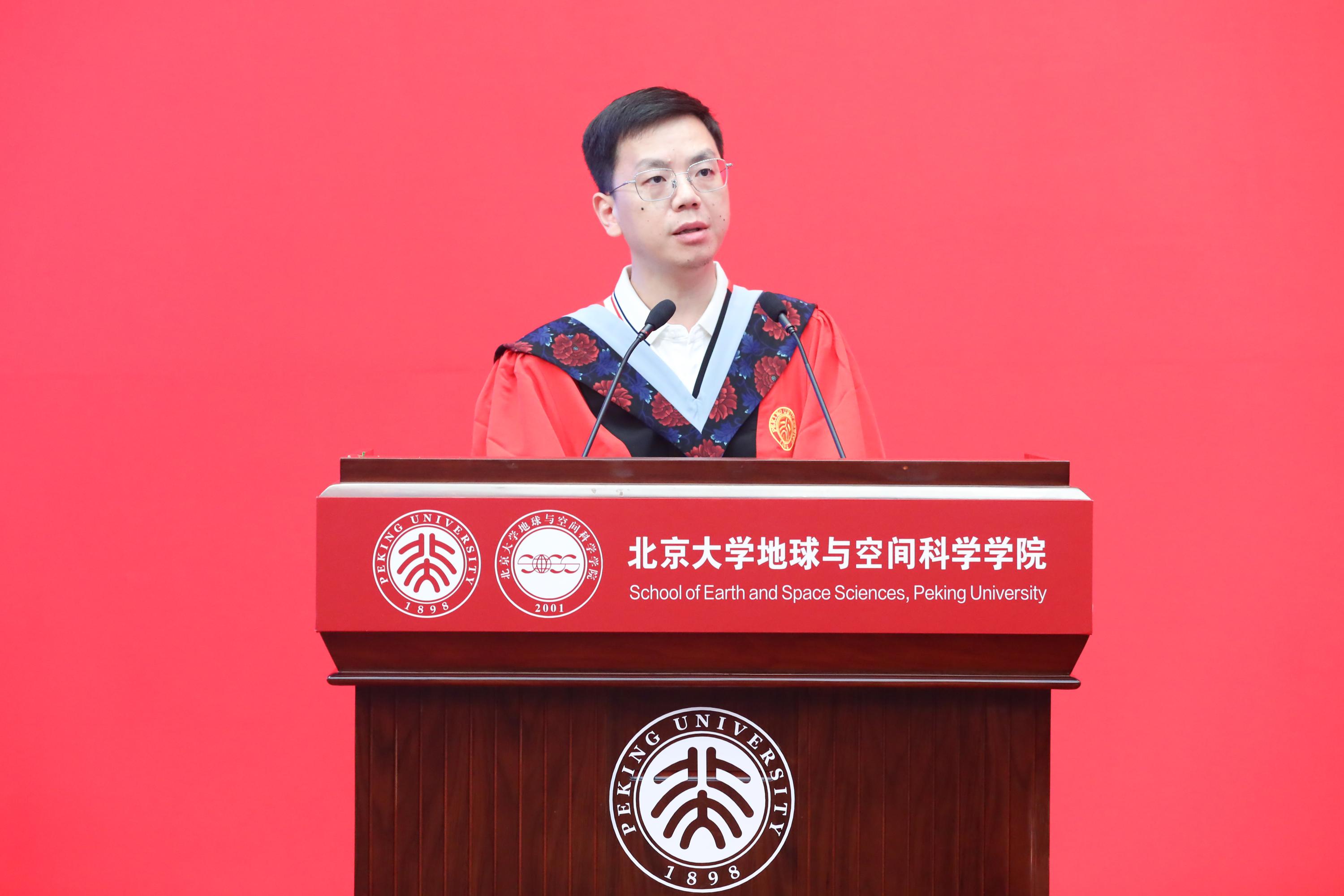 教师代表黄舟向毕业生提出三点期望:一是做有使命的卫星,以尖端科技服务朴素人类需求,诠释“家国天下”担当;二是做敢创新的行星,保持“地质锤思维”应对AI时代挑战;三是做带温度的探测器,让科研流淌人文关怀。他勉励学子从“观察者”成长为“塑造者”,怀揣北大精神,以地空学识解读时代命题,用遥感天眼守望家园未来。