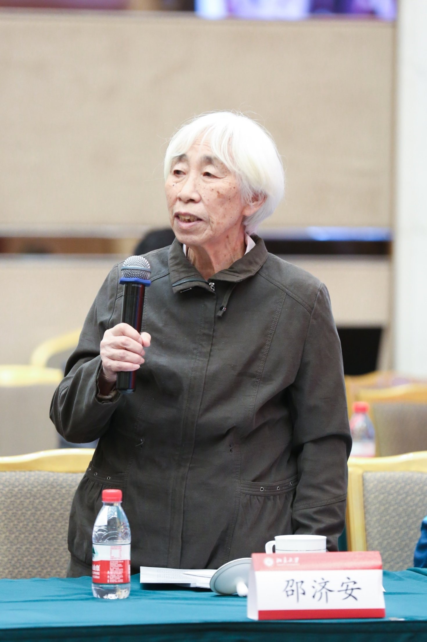,地质系教授邵济安回忆了王仁先生刚到地质地理系后,共同学习地质学、力学概念和研读英文原版构造地质学名著的经历,以及颂扬了王仁先生开拓进取、虚心好学、甘为人梯的优秀品质。尤其敬佩王仁先生1973年为国家地震局在河北三河县开办长达半年的数学、力学进修班时所表现的那种不畏艰苦、鞠躬尽瘁、认真工作的精神。她说,王仁先生是一位和蔼可亲、平易近人,没有一点教授架子的良师益友。