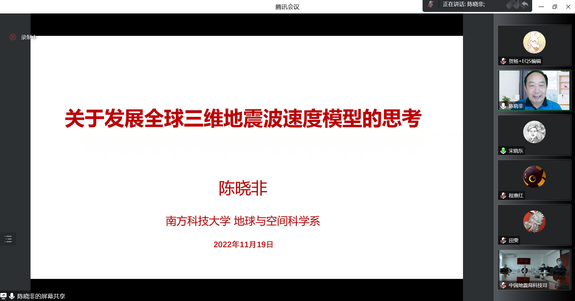 研讨会邀请陈晓非院士等11位专家作报告,交流现有模型和数据的共享与检测方法,探讨了建立我国标准地球参考模型和检测模型的标准方法及标准数据库的可能方式。陈晓非院士在大会主旨报告《关于构建全球三维地震波速度模型的思考》中,提出了模型发展的创新性思考,建议采用充分尊重每个参与科学家贡献的模式进行广泛合作,推出的结果必须经过第三方独立验证、检验,才是破解构建三维参考模型困局之道。在报告过程中,5位院士都给出了具体的建议。