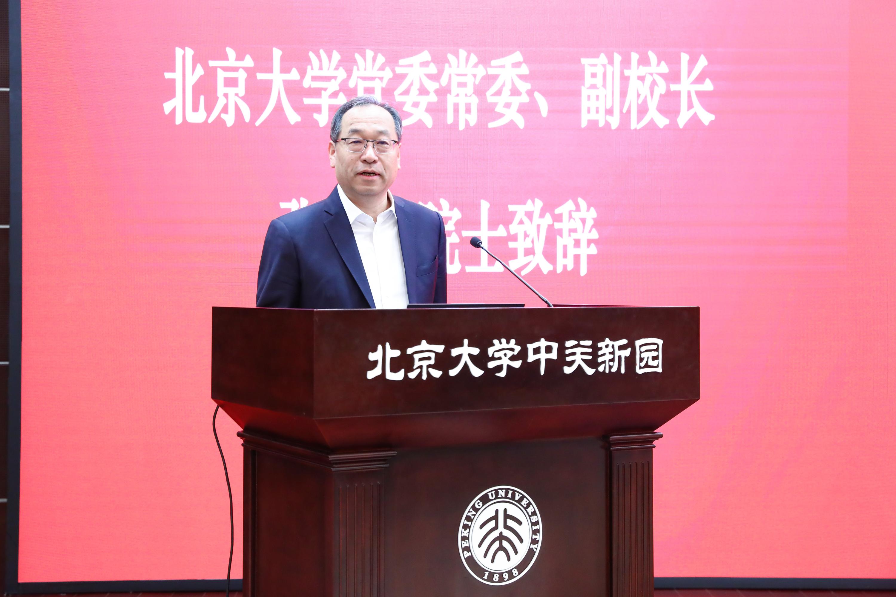 致辞。他指出北京大学地外样品研究中心的成立,将为我校有组织科研注入强劲动力,推动一系列创新研究的开展。希望研究团队成员,脚踏实地,仰望星空,以更加坚定的信心、更加严谨的科学态度、更加团结的协作精神,为实现深空领域的科技自立自强,为建设科技强国,贡献出北大智慧,地空力量!