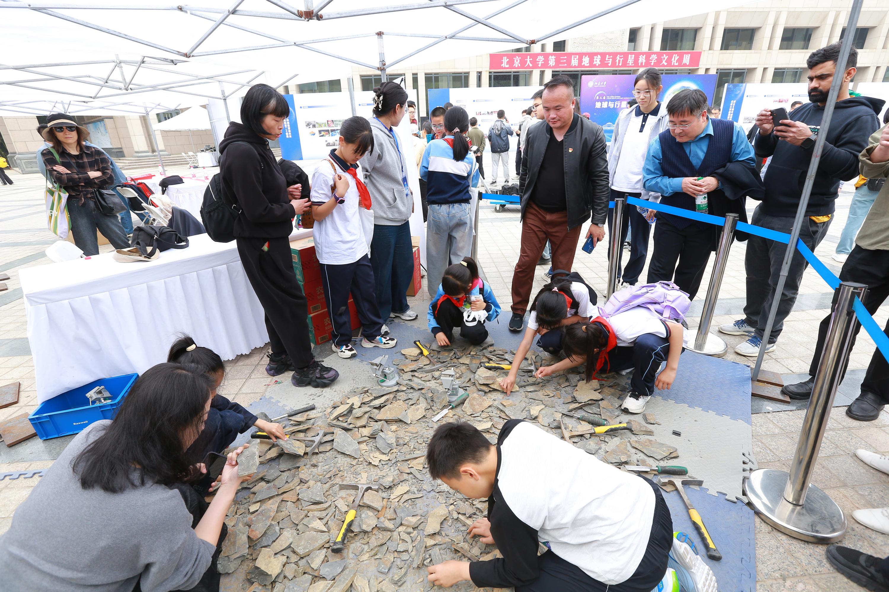 “星火初燃——地球诞生与前世曙光”追溯行星起源奥秘,“智慧之眼——俯瞰地球今生的科技奥秘”展示遥感前沿技术,“守护蔚蓝——垃圾分类与可持续发展”聚焦生态实践…… 现场特别设计生物演化飞行棋、遥感识燕园、垃圾分类大行动等沉浸式学科文化体验活动,将知识传播与趣味互动巧妙融合。同时,北京大学地质博物馆珍藏的矿物与化石标本展、九华山世界地质公园“世界地质公园巡展”,以及北京大学青年天文学会带来的太阳观测展位,多维度呈现地球与行星科学的丰富魅力。开幕式结束后,今期六合彩号码