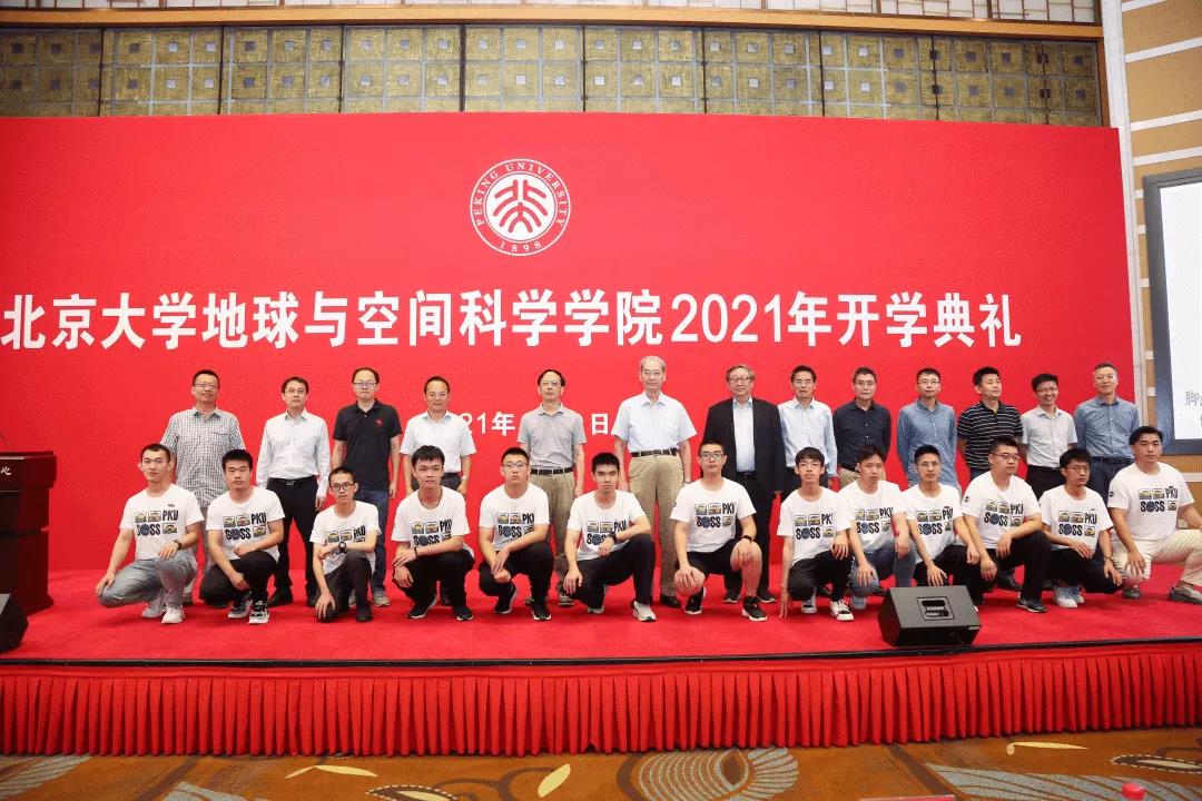 在燕园情的音乐声中,与会教师上台为新生代表佩戴北大校徽并合影,其余新生则在台下郑重地为自己佩戴上校徽。环节庄严且有仪式感,这枚校徽不仅仅代表着“北大人”的身份,更承载着地空“脚踏实地、仰望星空”的精神,承载着师长的嘱托和厚望、地空人的使命和荣光。和无数先辈一样,从这一刻起新生将个人的前途与民族的命运紧紧相连,在这片土地上点燃理想的火炬,传播文明的种子。