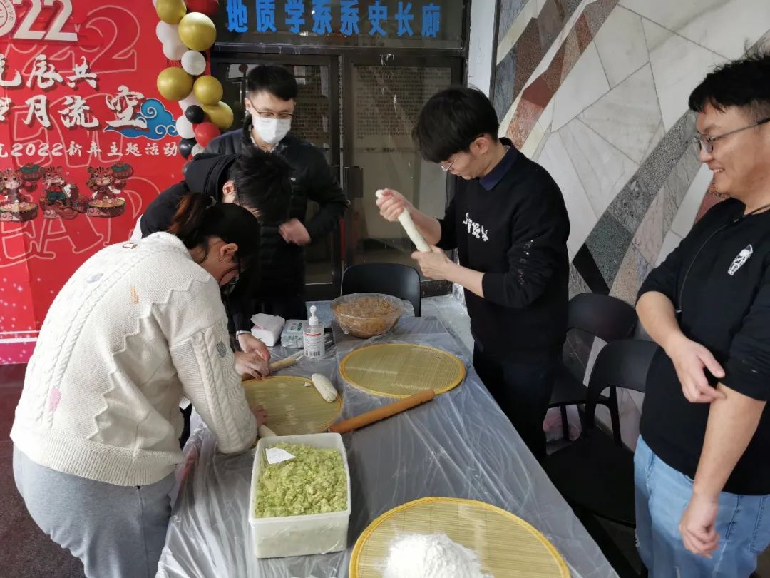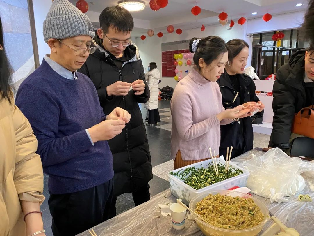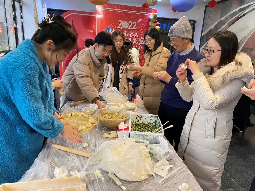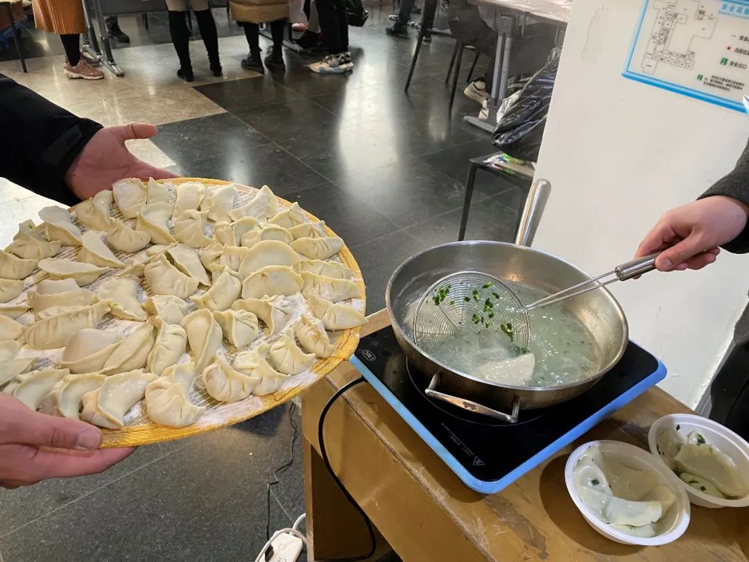 浓浓的年味,满满的喜庆,每张桌子上早已准备好了包饺子的食材和工具,猪肉白菜、猪肉玉米、韭菜鸡蛋等五种馅,让来自天南地北的同学都在这里找到了家的感觉。
