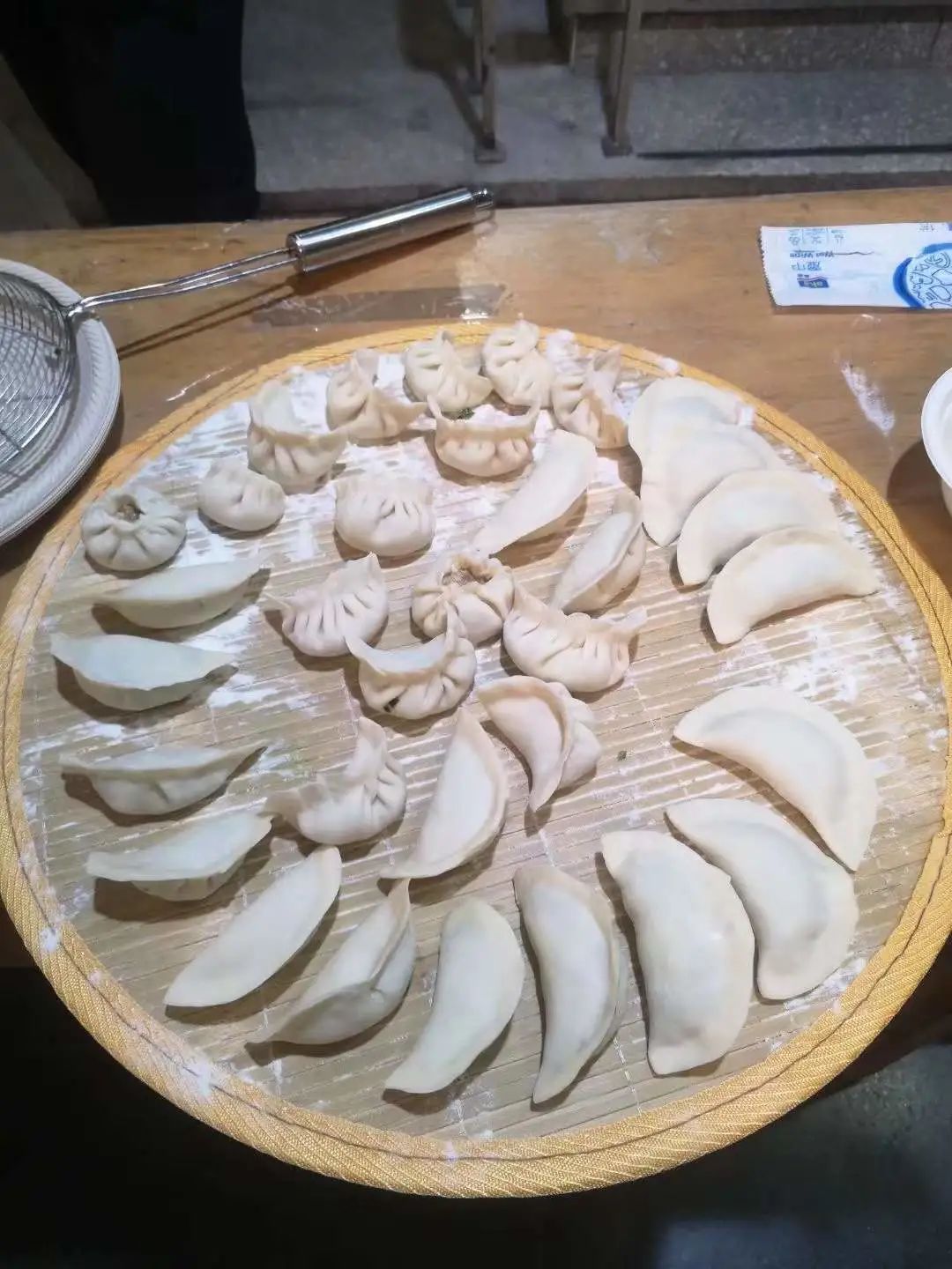 在大家的共同努力下,不一会儿,餐盘里就摆满了或大或小、花样繁多、充满创意、或圆润或别致的饺子