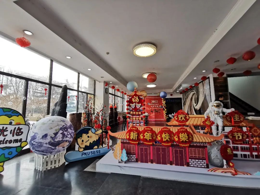 学院精心装点了逸夫贰楼大厅,现场喜气洋洋,充满了节日氛围。
