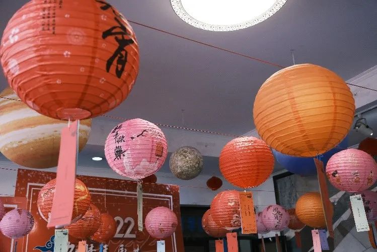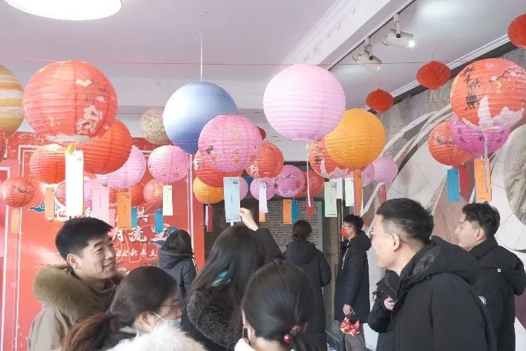 灯笼添彩空中闹,良宵美景别样好。元宵佳节,学院大厅挂上各式灯笼,并为同学准备了几百份灯谜及精美礼品,赏灯猜谜让元宵节的气氛热闹而温馨。