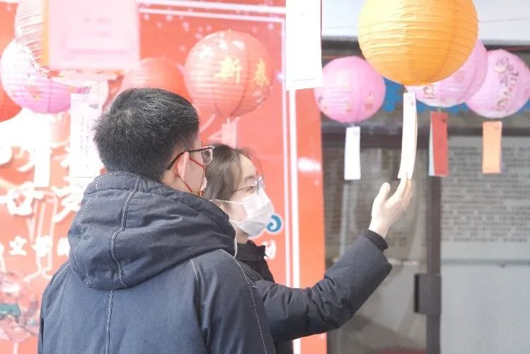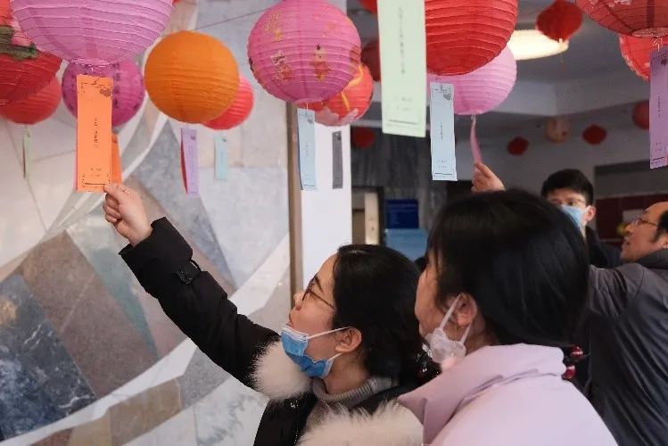 猜灯谜,又称打灯谜,是中国独有的富有民族特色的文娱活动。灯谜在春秋时期就有,当时称作“隐语”,汉魏时期称为“谜”。正月十五,逸夫贰楼大厅挂起彩灯,五光十色的灯笼下挂满谜语,吸引众多学院老师及同学驻足,赏花灯、猜灯谜,感受佳节气氛,体验乡风民情。