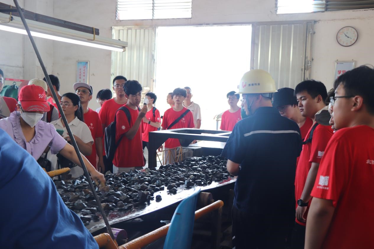 之后,为了更加深入地了解钨矿的处理,实践团前往正在开采的钨矿矿区进行更进一步的观察和学习。矿区的工作人员十分细致地介绍了整个矿区进行加工的流程,带领同学们一步一步地感受钨矿的处理。人工筛选预先富集、跳汰机重力选矿、摇床重力选矿……工作人员带领同学们穿梭在矿区的各个区域,认识各种钨矿加工机器和流程,学习相关工作原理,使同学们对钨业生产有了更深入的认识。