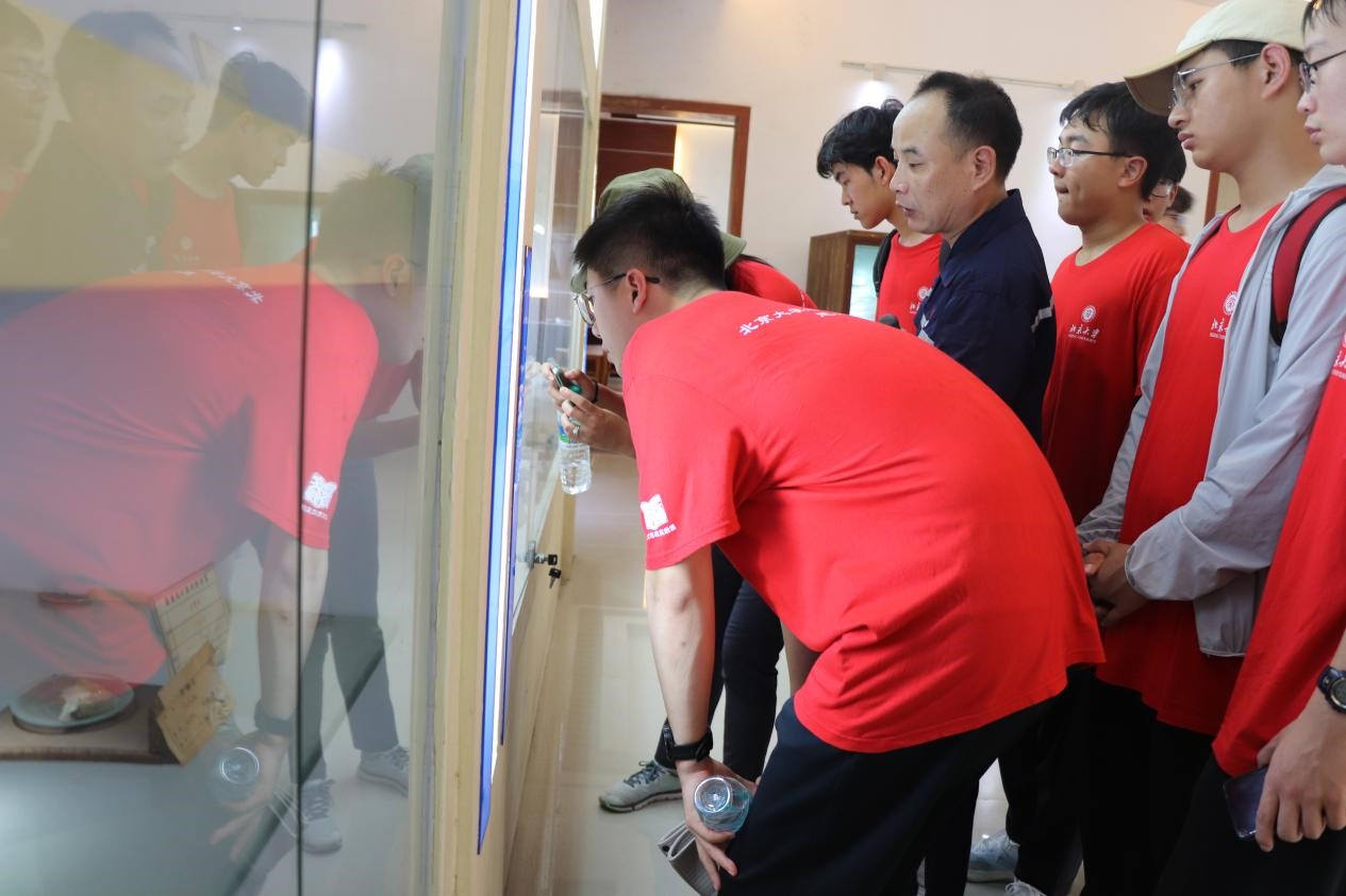 授牌仪式结束后,实践团深入馆内参观。走进南方红军三年游击战争纪念馆的大厅,映入眼帘的是一面破山而出的中国工农红军军旗,气势如虹的旗帜仿佛述说着红军为理想成仁取义的悲壮故事。参观纪念馆的过程中,同学们体验到了真实的游击战争场景,感受到红军们为了信仰和自由所付出的艰辛和牺牲,望着一张又一张革命先烈的相片,看着展柜中陈列的一件又一件革命文物,感受着一幕又一幕生动还原的布景,同学们更加真切地体悟到了先烈们那种前仆后继,不畏强暴,心怀火种的伟大牺牲精神。
