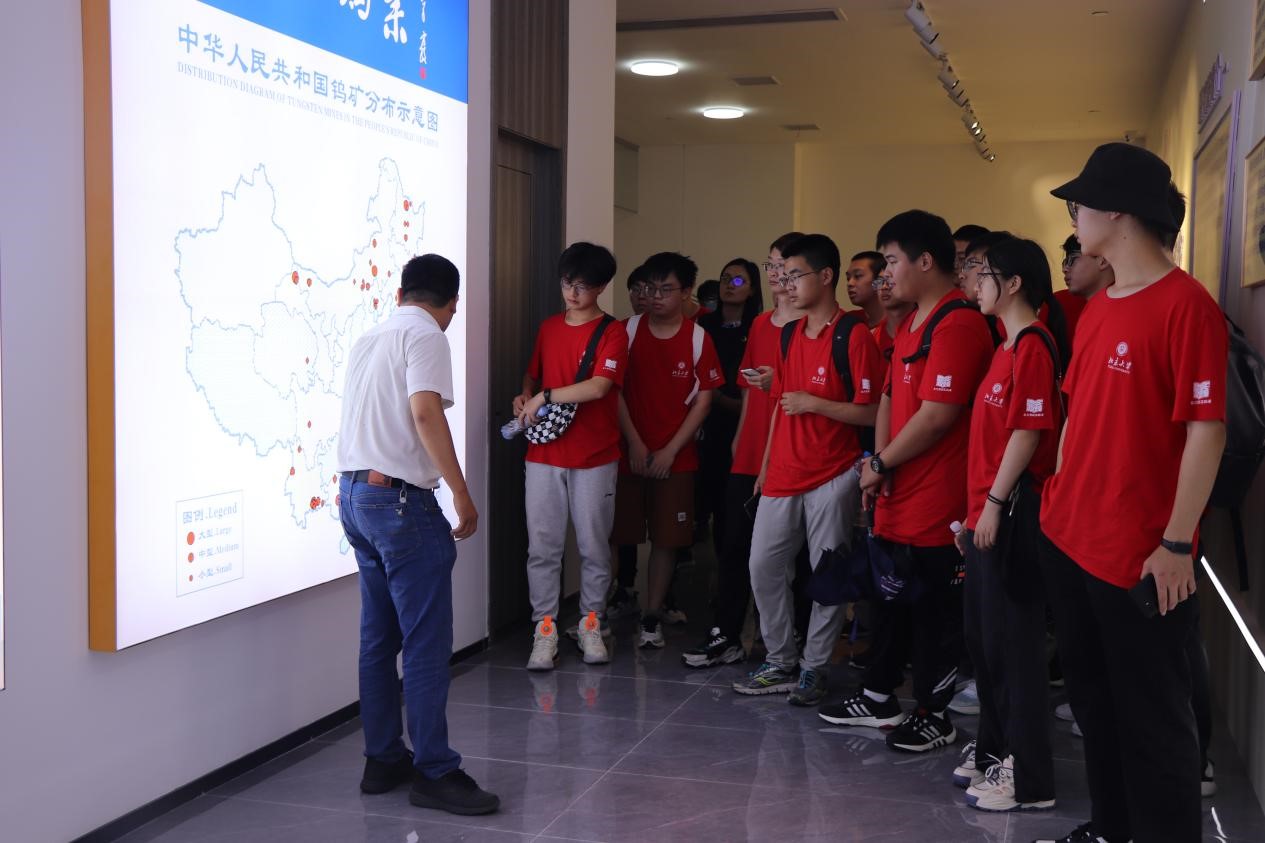 下午,实践团来到江西漂塘钨业有限公司,它地处"世界钨都"大余县境内。钨矿发现于1918年,1954年8月由西华山钨矿漂塘分场成立漂塘钨矿,2009年6月26日矿山依法实施政策性关闭破产,重组成立江西漂塘钨业有限公司,隶属江西业控股集团有限公司。实践团通过参观和体验,深入了解钨业生产相关的历史发展和流程技术。在公司总部,在工作人员的带领和解说下,同学们了解了公司发展的历史、前景和公司系列建设,同时在展示厅欣赏了钨业相关矿物,对钨业有了进一步认识。