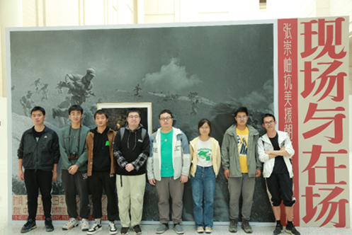 大家集体参观“现场与在场——张崇岫抗美援朝摄影作品展”,从历史的真实影像中感受那段波澜壮阔的历史。张崇岫于1942年加入新四军,先后参加过淮海战役、济南战役、渡江战役等。抗美援朝战争期间,他担任志愿军第9兵团政治部摄影组组长,主要参与了第二次战役、第五次战役的前线拍摄。