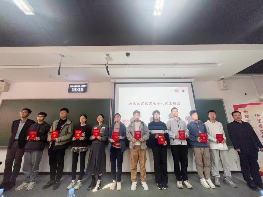 王杨、陈云超为本次思政实践的优秀个人代表颁奖,表彰他们在实践中取得的突出成绩,并激励更多同学在继续以饱满的热情、昂扬的面貌和严格的标准参与思政实践。