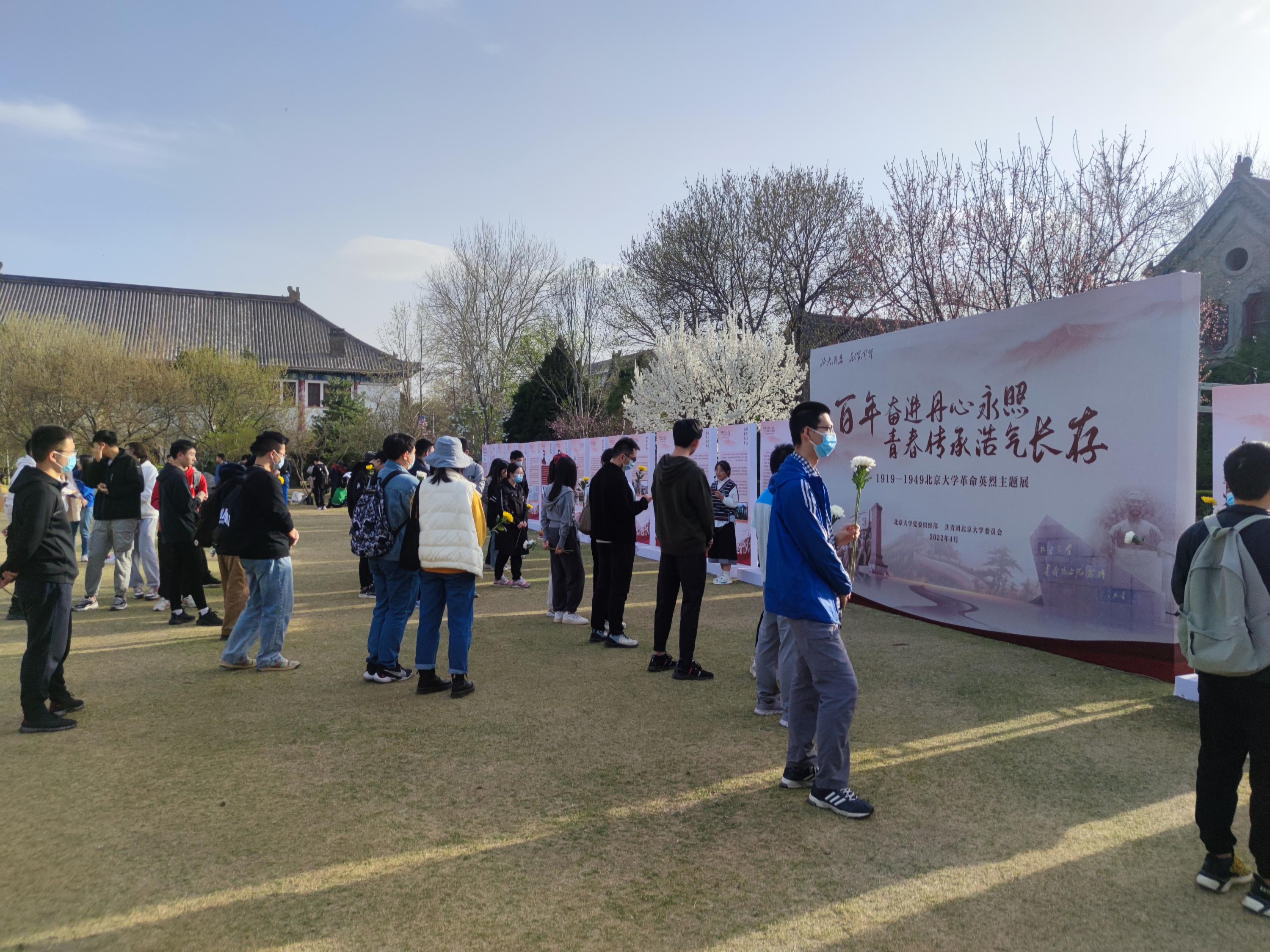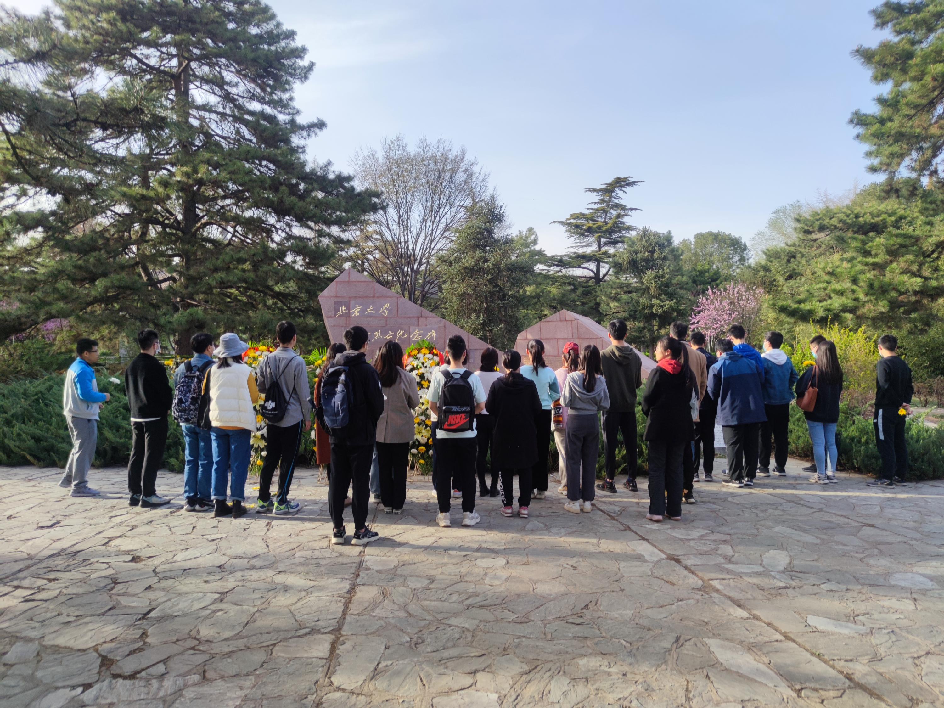 为追思红色记忆,增强青年的强国责任和使命感,遥感硕士生党支部于4月5日开展“清明缅怀英烈,传承革命精神”党团日联合主题教育活动,组织2019-2021级的遥感硕士生的党团员共同参观了“百年奋进丹心永照,青春传承浩气长存”1919-1949北京大学革命英烈主题展,并向北大革命烈士纪念碑敬献鲜花。伴随着志愿讲解员的解读,传颂英雄红色故事,激励北大学子铭记革命历史,慎终追远,珍惜幸福生活,凝聚奋进力量。