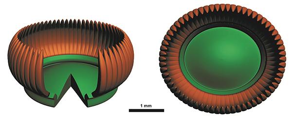华南晚泥盆世种子植物的花粉囊——钵囊的复原图,囊托及其边缘着生的众多小孢子囊