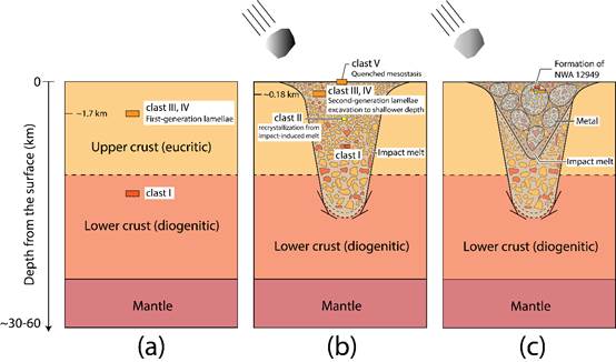 3 中铁陨石NWA 12949的三阶段演化模型。